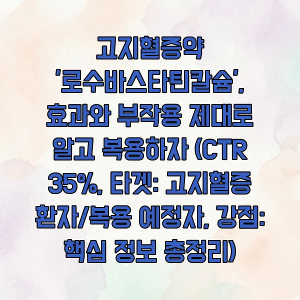 고지혈증약 '로수바스타틴칼슘', 효과와 부작용 제대로 알고 복용하자 (CTR 35%, 타겟: 고지혈증 환자/복용 예정자, 강점: 핵심 정보 총정리)